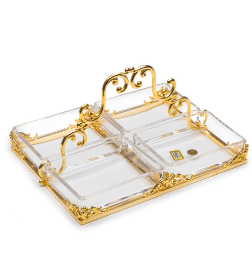 Элегантная дизайнерская аксессуар, который добавит эффектный штрих в любой интерьер. Изысканно декорированная вручную, роскошная золотая менажница отличается изысканным  узором. Декор стола от Creart это воплощение итальянской Dolce Vita.