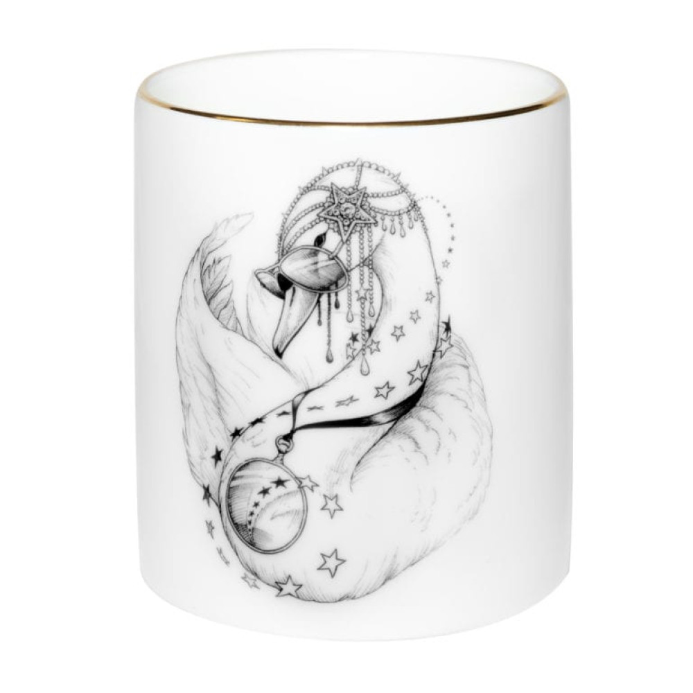 Изысканная свеча в красивой вазе из костяного фарфора, украшенная одной из иллюстраций Рори, с замысловатым черно-белым рисунком. Золотая отделка 22 карата нанесена вручную по краю вазы.  После использования ароматической свечи вазу можно использовать повторно в качестве сахарницы, безделушки, чайника / кофейника или в качестве украшения.