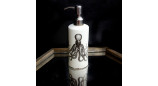 Изысканный Дозатор для жидкого мыла из белого костяного фарфора Omar Octopus, украшенный одной из иллюстраций Рори, с замысловатым черно-белым рисунком. серебристая отделка нанесена вручную по краю.  Диспенсер для мыла из тонкого костяного фарфора составит вам компанию во время 20-секундного мытья. Красивый дизайн в виде сержца. Тонкий костяной фарфор с замысловатой авторской черной иллюстрацией тушью. Ручная роспись и серебряная окантовка.